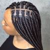 Sh...Tresses collées avec rajouts et motifs, réalisées sur toute la tête.